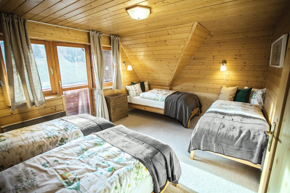 Táto izba je vybavená drevenými posteľami s konfortnými matracmi. Ložka predstavuju jednu manželskú posteľ a dve samostatné postele. Interiér izby doplňujú 2 komody, zrkadlo, a 2 malé vešiaky. Atmosféru tejto izby vytvára zelená s dolnením žletej.